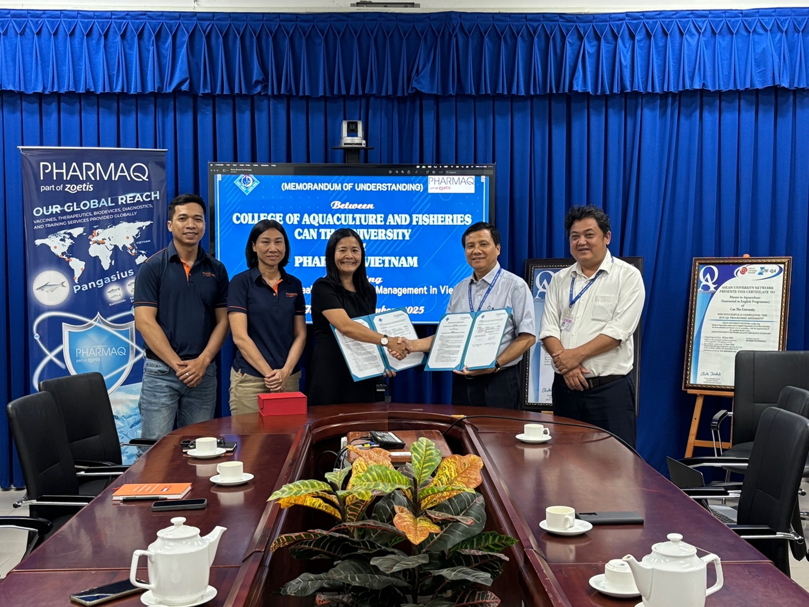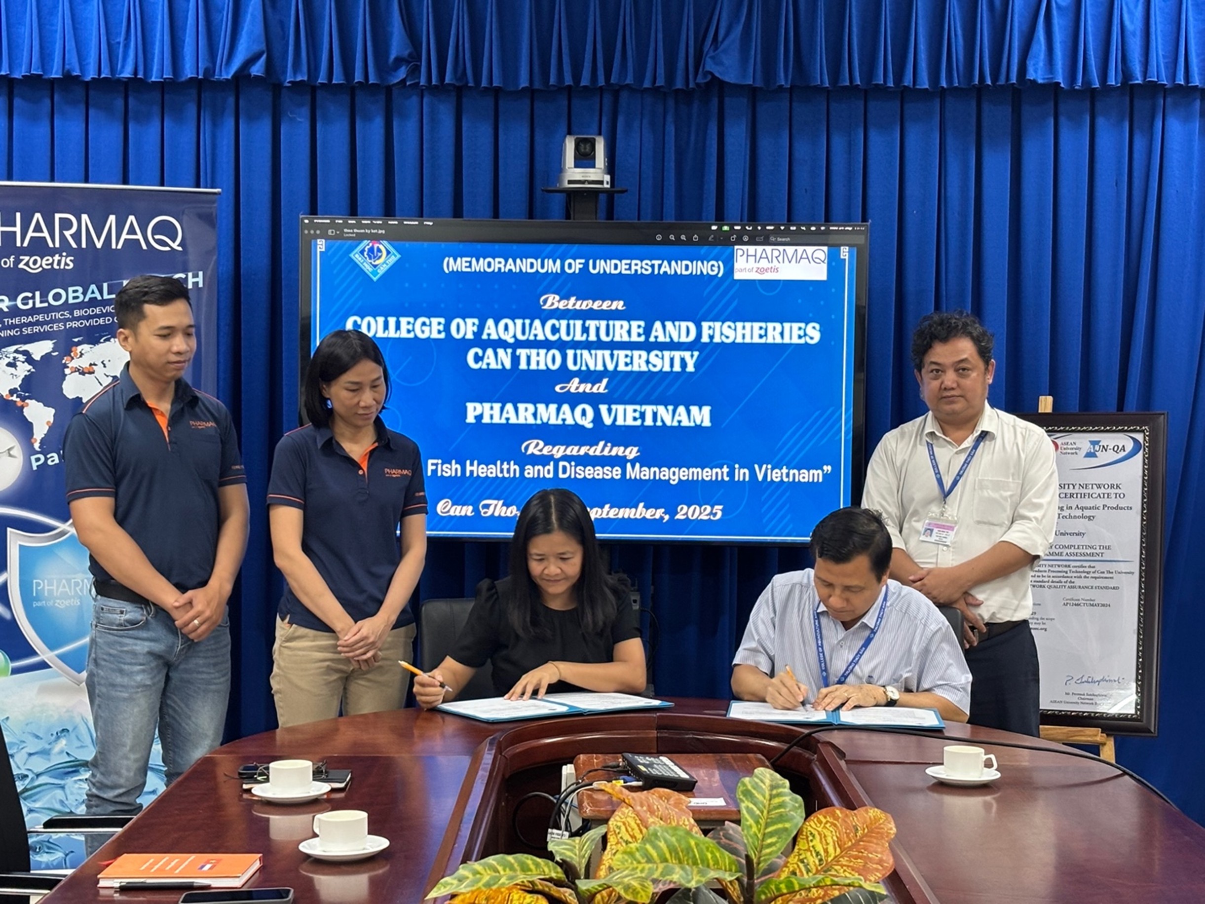 Sáng ngày 25/09/2025, Trường Thủy sản - Đại học Cần Thơ và Công ty Pharmaq Việt Nam đã tổ chức Lễ ký kết Biên bản ghi nhớ hợp tác giữa hai đơn vị. Tham dự buổi lễ, về phía Trường Thủy sản - Đại học Cần Thơ có GS.TS. Vũ Ngọc Út, Hiệu trưởng Trường Thủy sản cùng đại diện lãnh đạo các Khoa trong Trường. Về phía Công ty Pharmaq Việt Nam, Bà Đinh Hoàng Oanh, Tổng Giám đốc của công ty cùng đại diện các đơn vị của công ty cùng tham dự.
