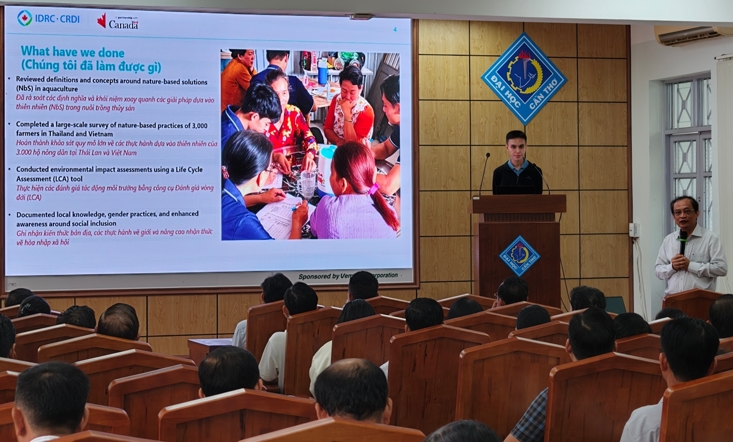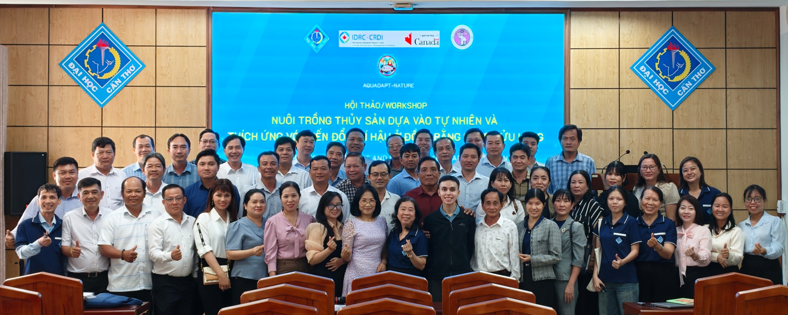 Sáng ngày 30/01/2026, Dự án “Giải pháp dựa vào tự nhiên (tạm dịch là thuận thiên) và nuôi trồng thủy sản thích ứng với biến đổi khí hậu ở Thái Lan và Việt Nam” (Nature-based Practices and Aquaculture Adaptation to Climate Change in Thailand and Vietnam – AQUADAPT-Nature), do IDRC và Chính phủ Canada tài trợ, Nhóm nghiên cứu về Môi trường và Xã hội thuộc Khoa Khoa học Xã hội (USER) của Đại học Chiang Mai (Thái Lan) điều phối, hợp phần phía Việt Nam do Trường Thủy sản, Đại học Cần Thơ thực hiện, đã tổ chức Hội thảo “Nuôi trồng thủy sản thuận thiên và thích ứng với biến đổi khí hậu ở Đồng bằng sông Cửu Long (ĐBSCL)” tại Trường Thủy sản, Đại học Cần Thơ.