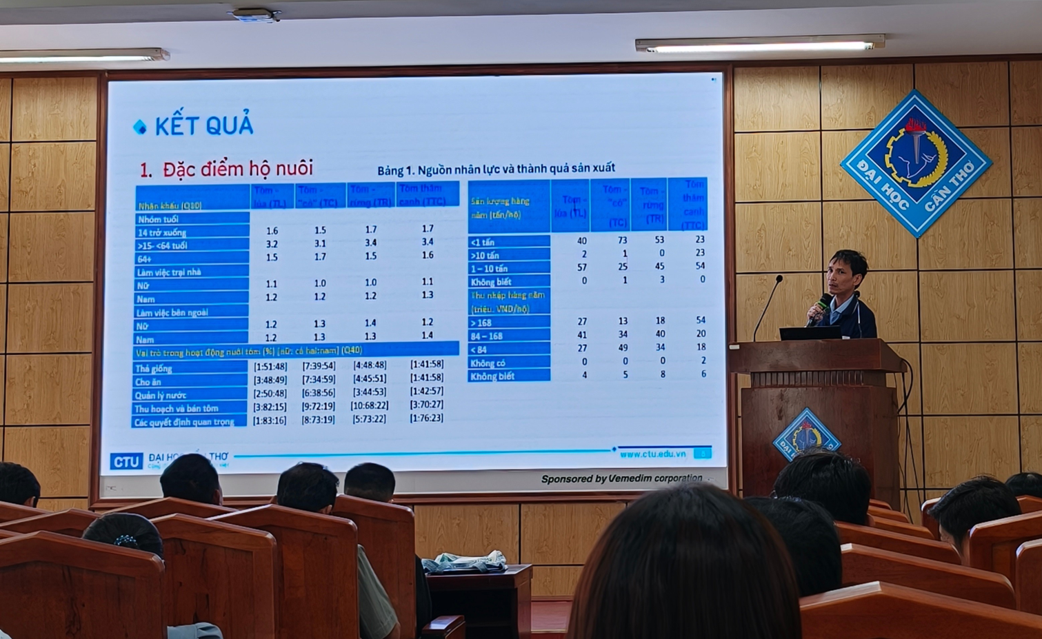 Tại hội thảo, nhóm nghiên cứu đã trình bày báo cáo kết quả điều tra 1.064 hộ nuôi thủy sản thuộc 10 mô hình phổ biến ở ĐBSCL như tôm thâm canh, tôm – lúa, tôm – rừng, hàu, sò huyết, cá – lúa/rừng,… Các báo cáo tập trung phân tích các khía cạnh nổi bật về “thuận thiên” cũng như khả năng thích ứng và chống chịu trước tác động của biến đổi khí hậu của các mô hình khảo sát.